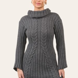 Long Sleeve Cable Roll Neck Knitted Jumper Dress