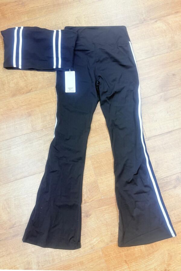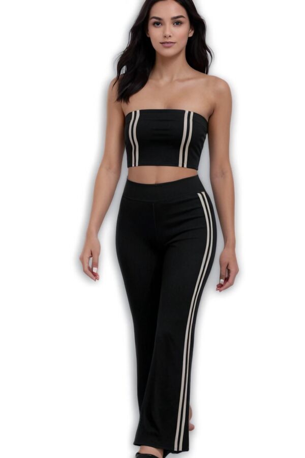 Black Strapless Cropped Top With Side Striped Flare Trouser