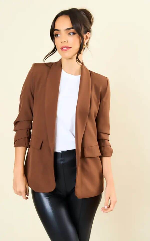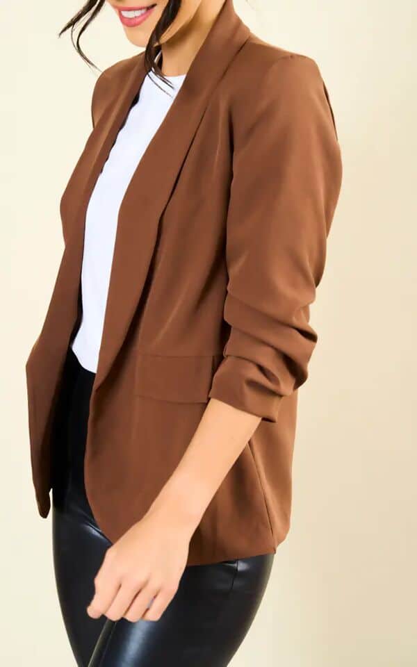 Chocolate Ruched Sleeve Blazer