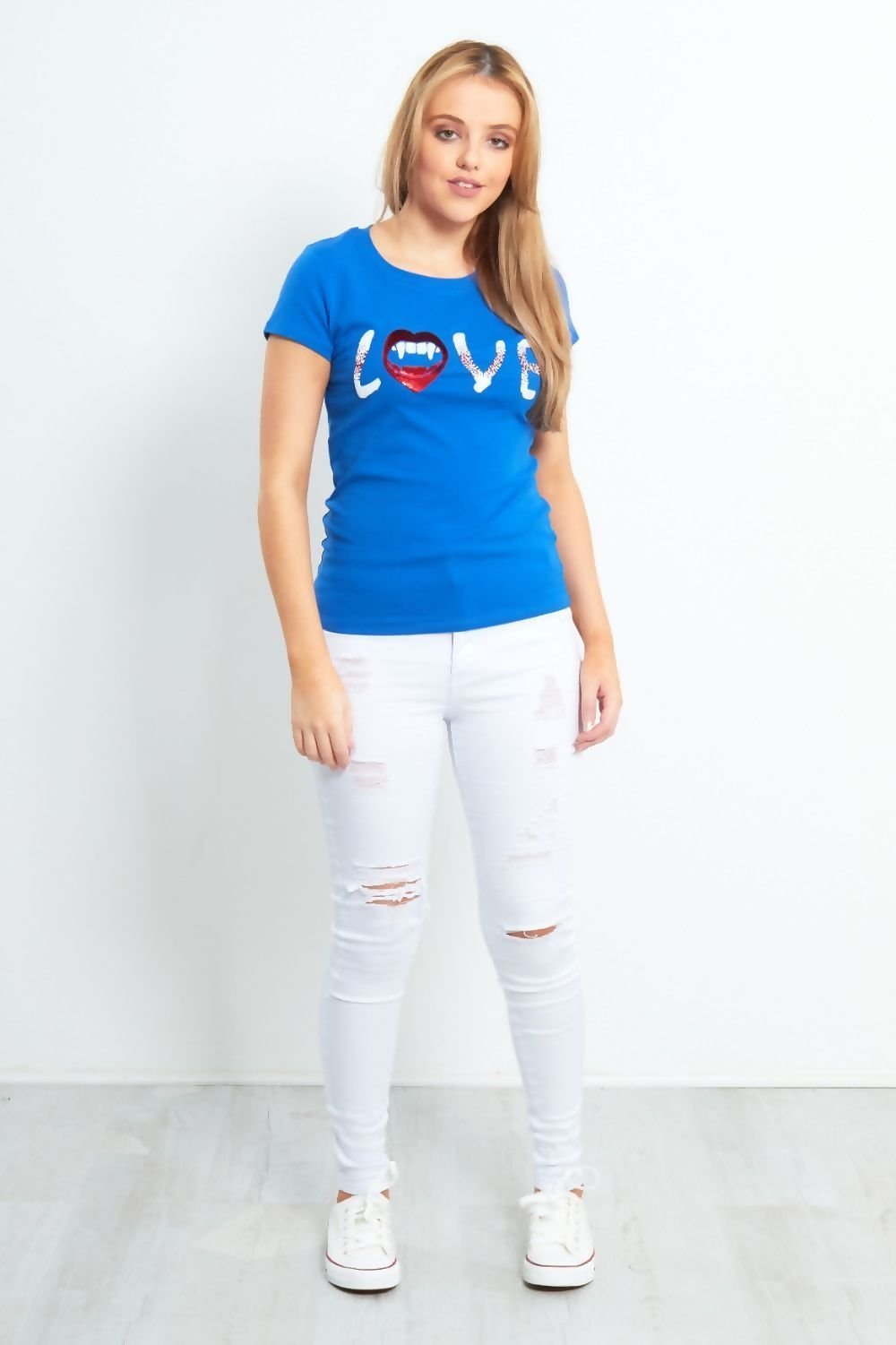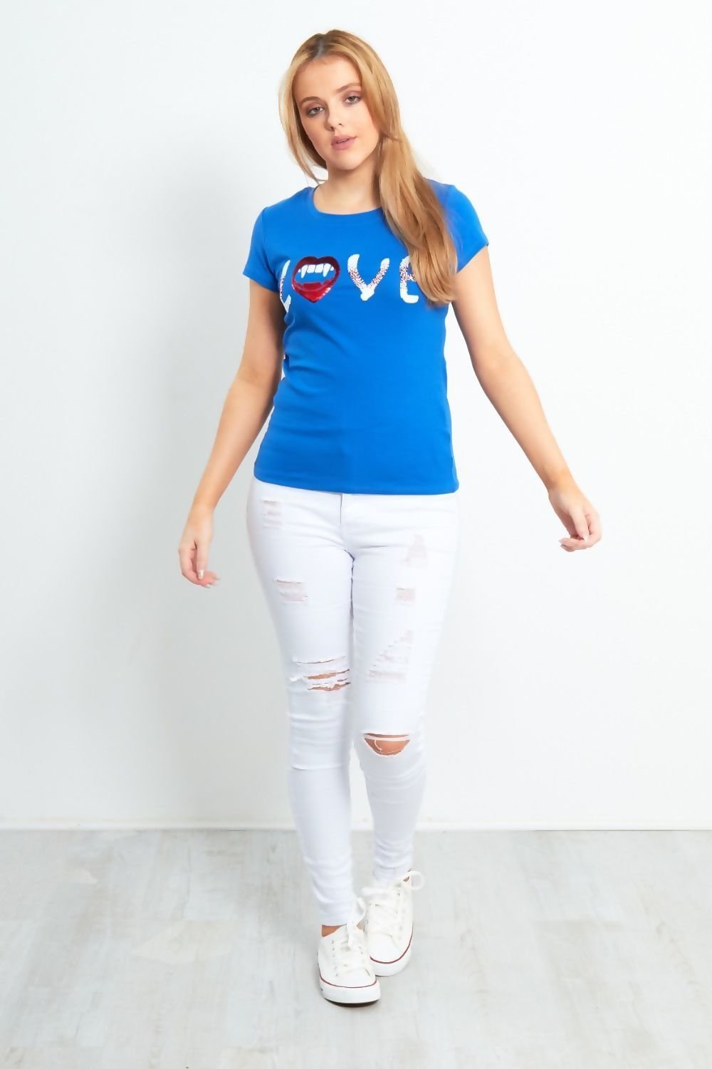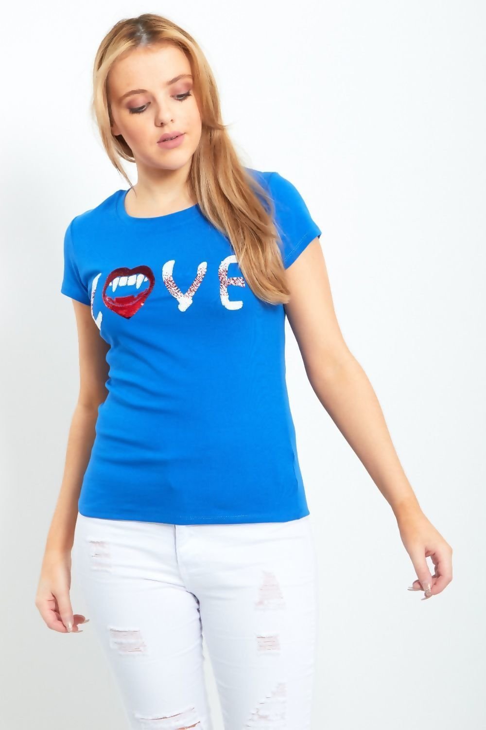 Dusty Paillette Sequin Love Slogan T-Shirt