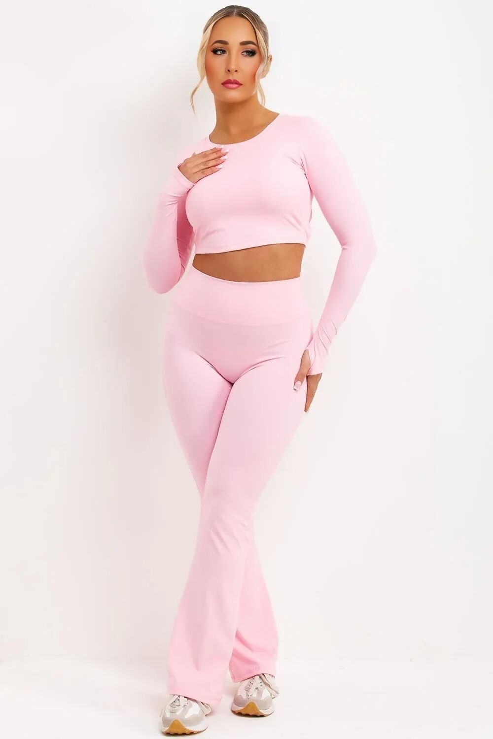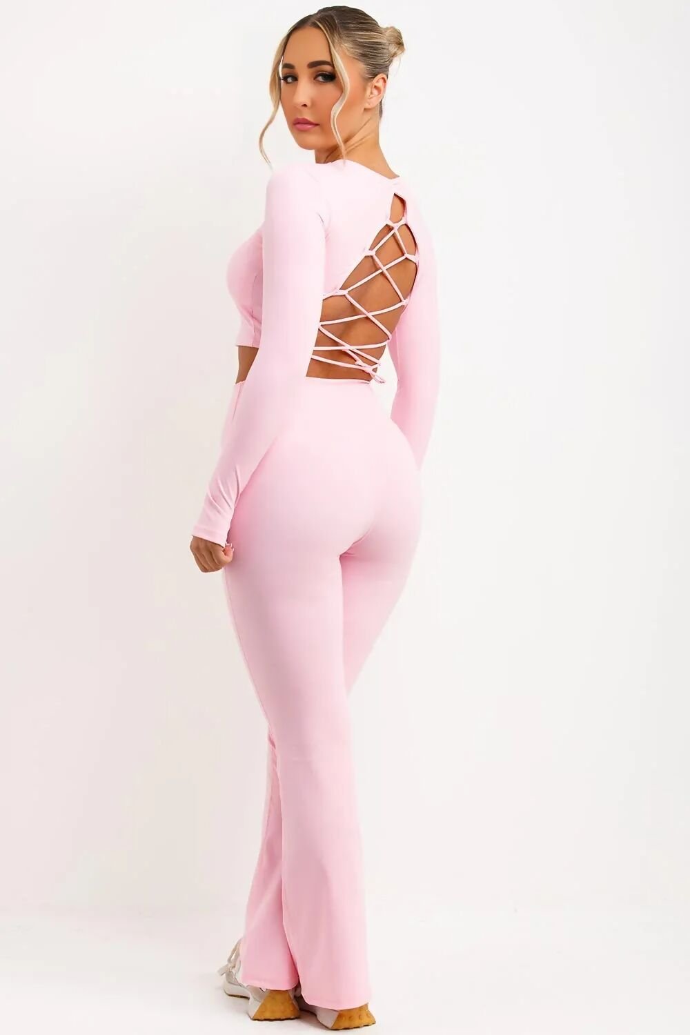 Pink Criss Cross Back Top And Flare Trouser Co-Ord Set