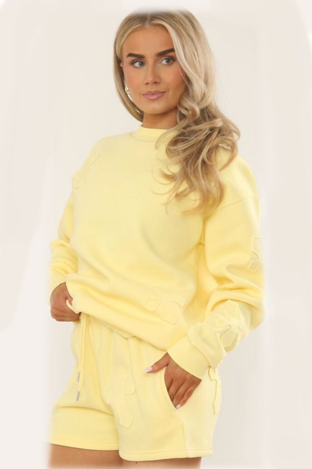 Yellow Embossed Cross Patch Sweatshirt And Shorts Set