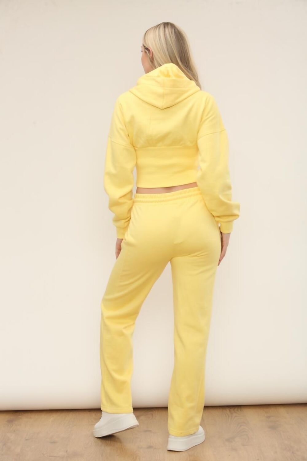 Yellow Ribbed Corset Fit Hoodie With Straight Leg Trouser